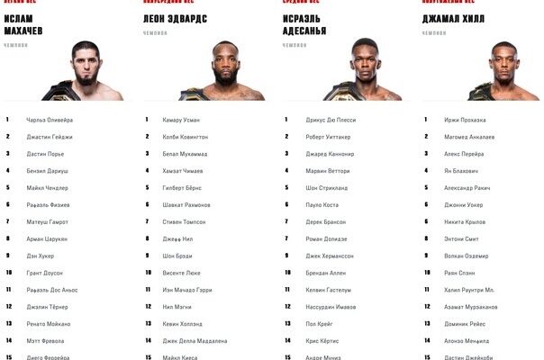 В связи с этим возникает закономерный вопрос: есть ли убедительные доводы в пользу того, что кто-то другой, а не действующий чемпион, должен занимать первую строчку рейтинга? Возможно, это непобежденный Шавкат Рахмонов, который из-за травмы упустил возможность сразиться за титул в полусреднем весе с Белалом Мухаммадом и теперь вынужден наблюдать со стороны, как новый чемпион Джек Делла Маддалена готовится к поединку с первым номером P4P Исламом Махачевым.