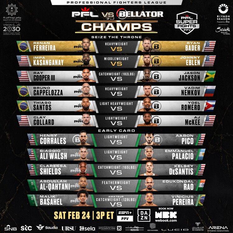 Пока неясно, как будет решаться вопрос с чемпионами Bellator. Возможно, некоторая ясность появится 25 января, когда действующий чемпион Bellator в легком весе Усман Нурмагомедов будет защищать свой титул против Пола Хьюза на турнире, который уже анонсируется как событие PFL Champions без упоминания Bellator.