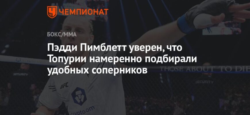 Перспективный легковес UFC Пэдди Пимблетт высказал мнение, что бывшему чемпиону промоушена в полулегком весе Илии Топурии подбирали удобных соперников на пути к титулу.