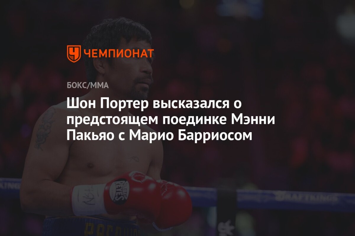 Экс-чемпион мира по боксу Шоун Портер прокомментировал предстоящий поединок между легендарным Мэнни Пакьяо и Марио Барриосом, выразив уверенность в шансах филиппинца.