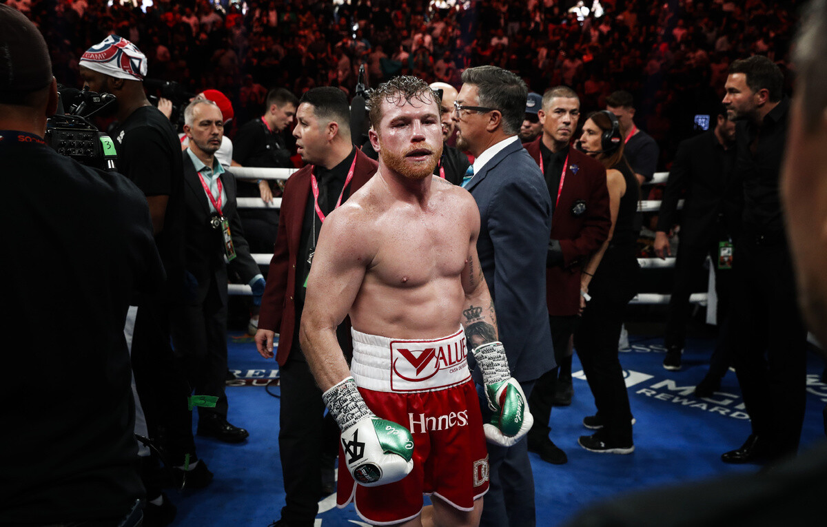 При упоминании Дмитрия Бивола Канело слегка ударил репортера по плечу. Он признал: «В тот вечер он был лучше меня». Это честное признание относилось к его поражению Биволу в полутяжелом весе в 2022 году, одному из всего двух явных поражений в впечатляющей карьере Канело.
