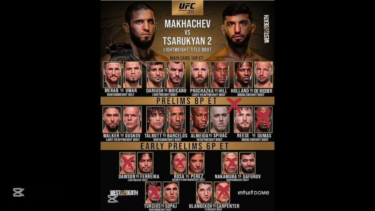 Основной кард UFC 311 начнется в 18:00 по восточному времени США. Ориентировочное время выхода бойцов на ринг — 22:20.