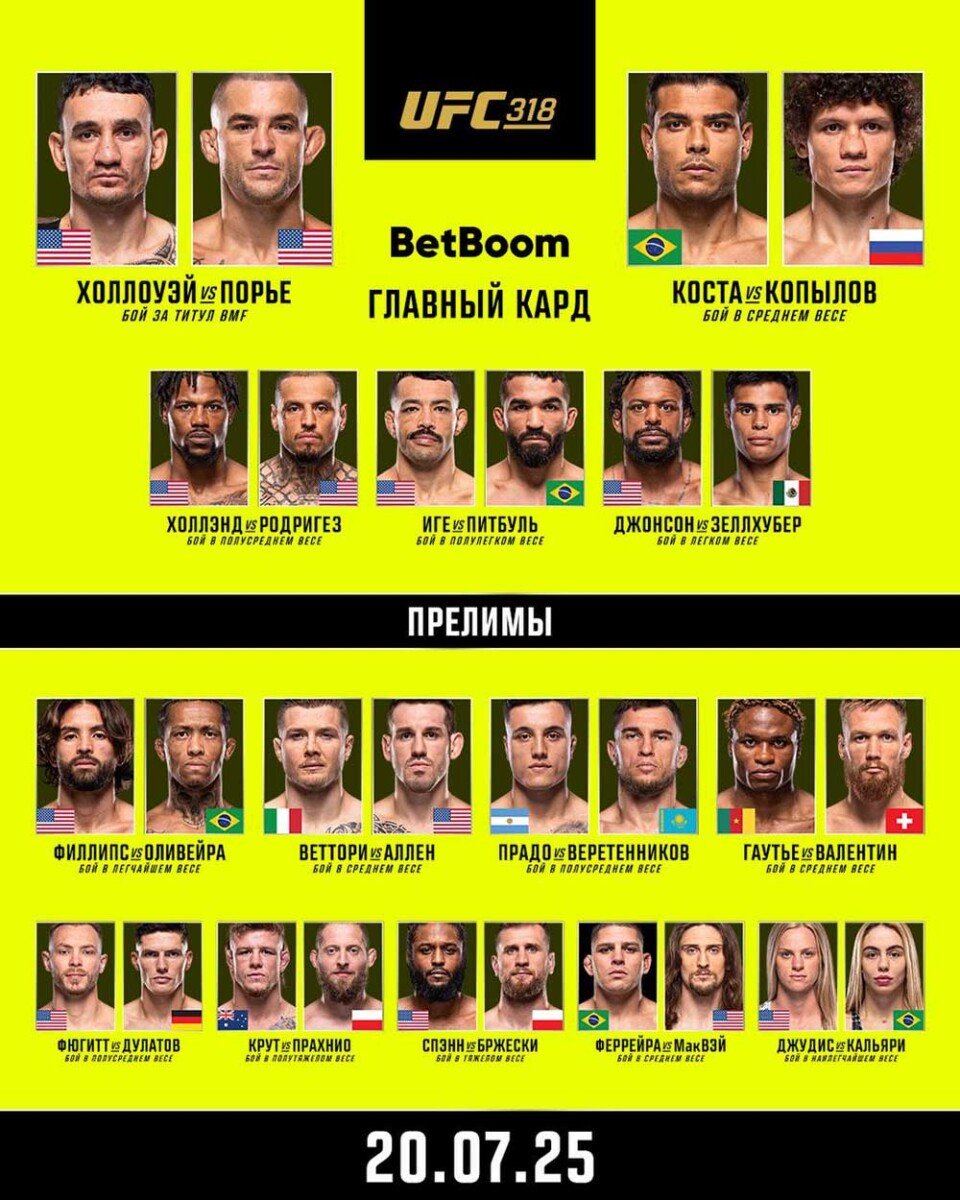 Полный кард турнира UFC 318