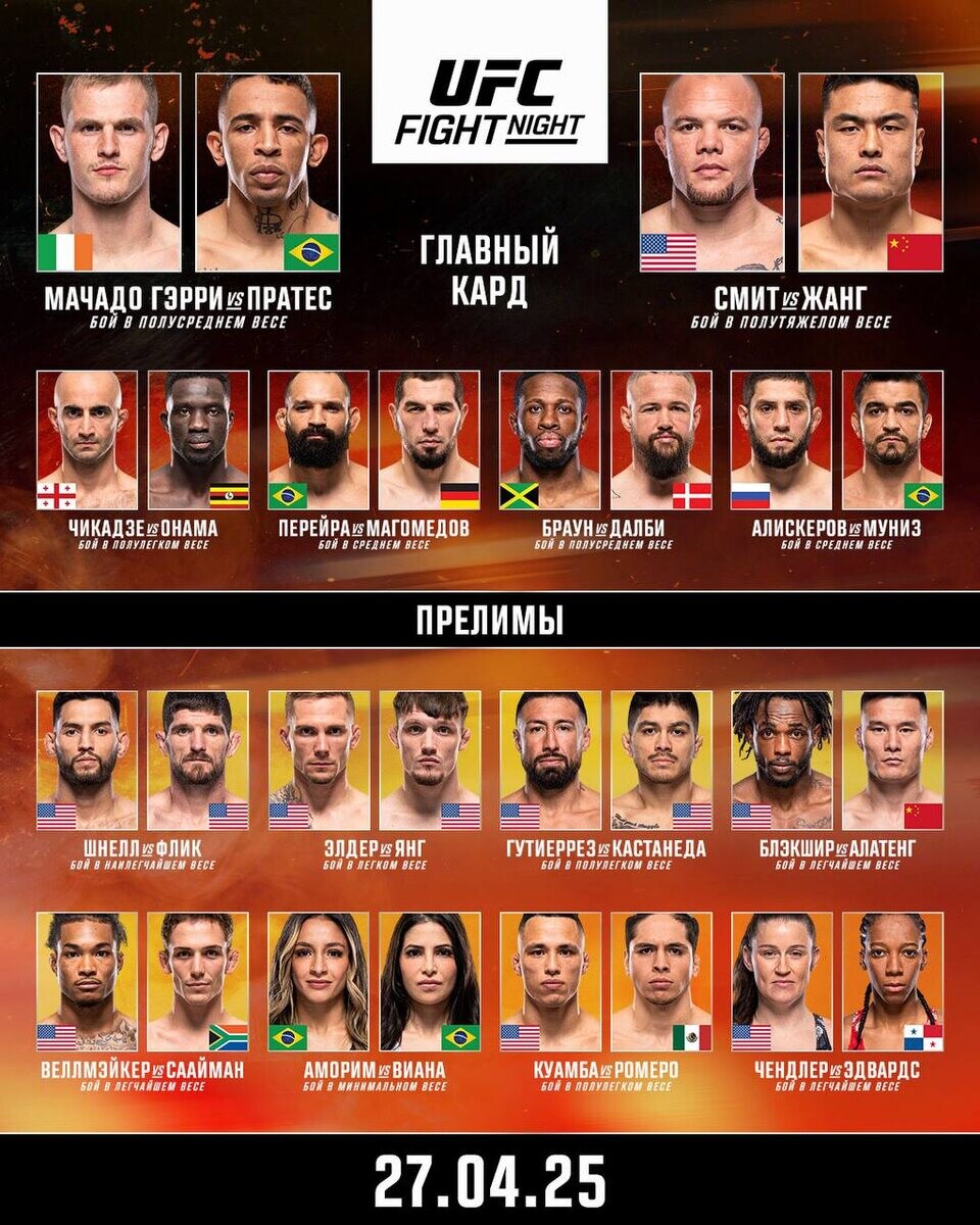 Прямая трансляция предварительных поединков начнется в 01:00 по московскому времени. Главный кард турнира стартует позднее, примерно в 04:00 по московскому времени.